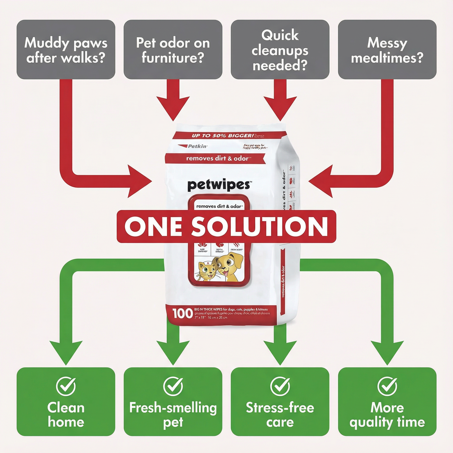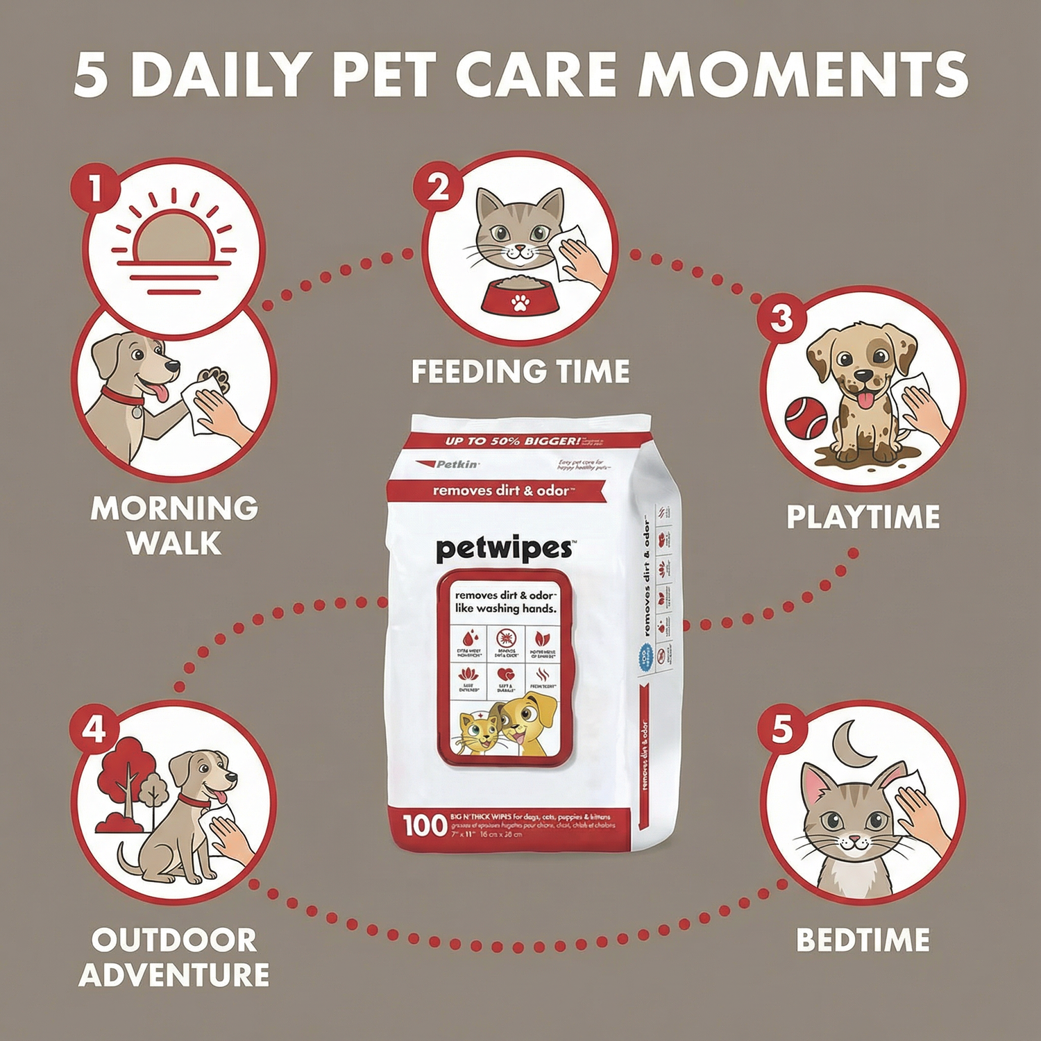 After outdoor play or walks, quickly wipe away dust, sweat, and grime. A stress-free way to keep your pet clean when bathing isn’t convenient.